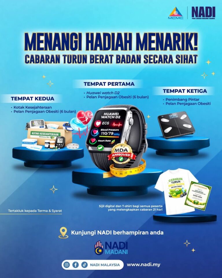 Ada yang dah mula daftar Program Cabaran Turun Berat Badan Secara Sihat bersama NADI ke tu? 👀 Jangan lepaskan peluang bagi yang masih belum mendaftar! Banyak hadiah menarik menanti anda. Turun berat badan cara sihat, tampil lebih bergaya menjelang Hari […]