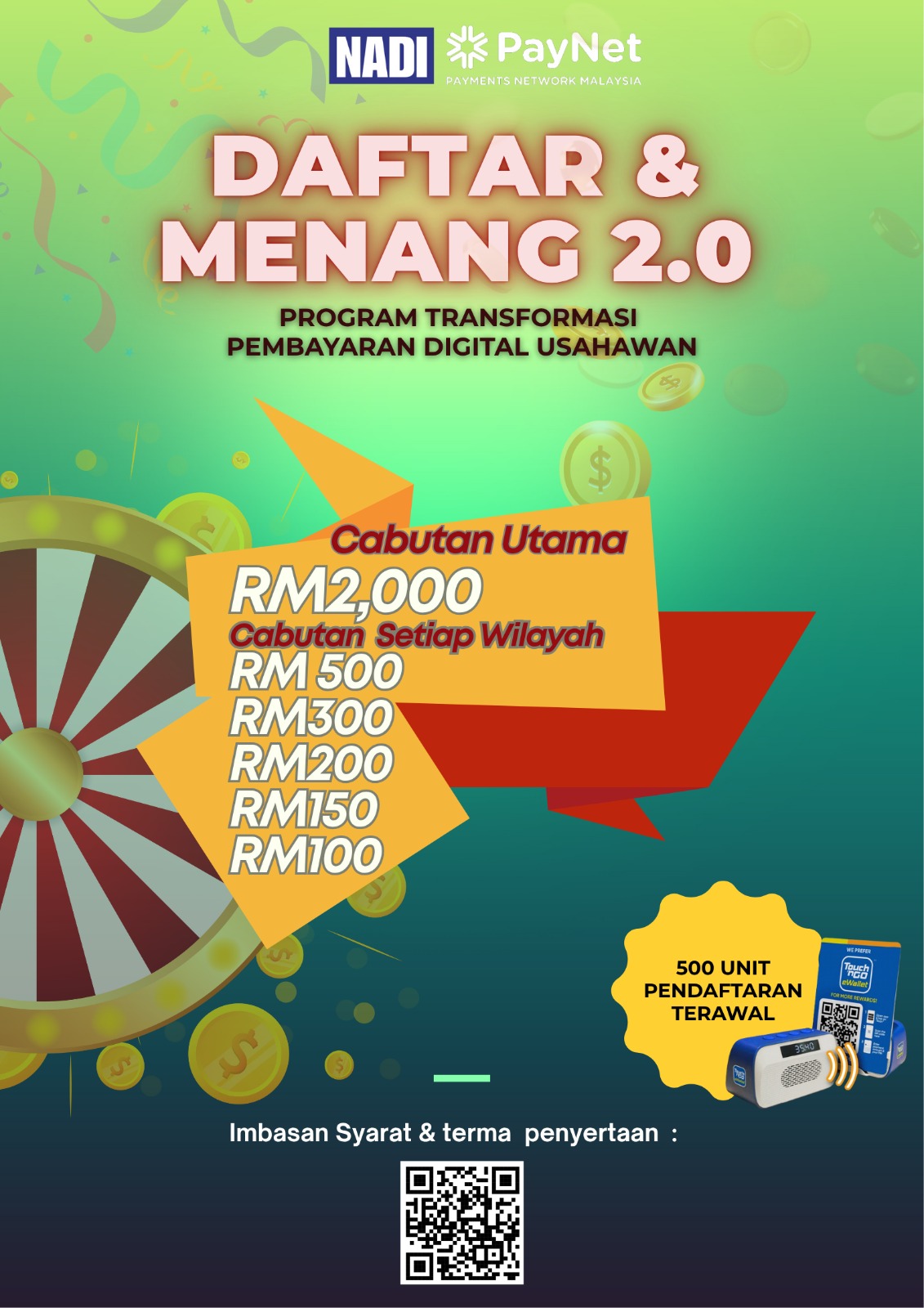 Program ini sebagai salah satu kempen bagi terus menggalakkan Usahawan untuk beralih kepada pembayaran Digital. Maklumat adalah seperti berikut: Terma Dan Syarat Penyertaan : Langkah pertama,Usahawan Wajib Berdaftar Sebagai ahliPusat Sebaran Maklumat Nasional (NADI) kelolaan TM yang berdekatan dan mendaftar diri untuk menyertai Peraduan […]