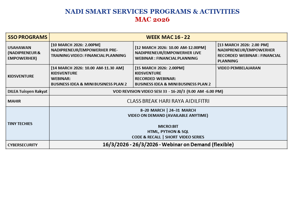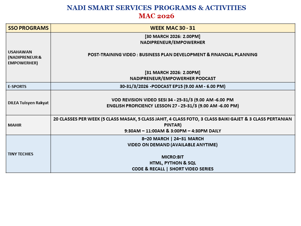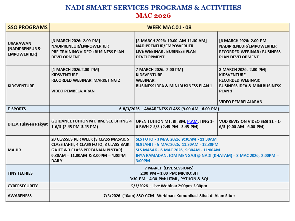 Jadual Latihan & Aktiviti