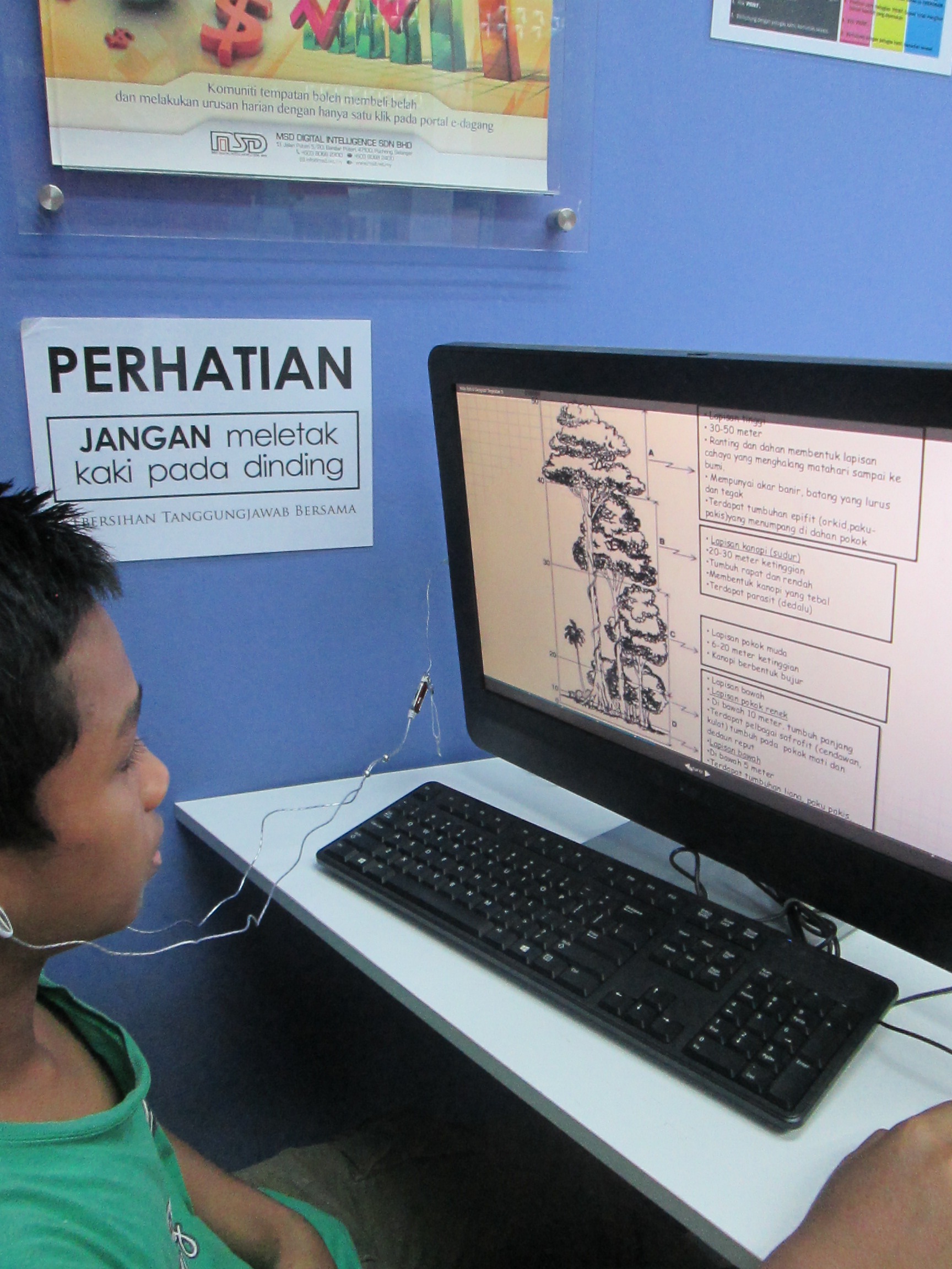 - Beliau dilatih gunakan asas perisian MS Office, asas komputer, mahir gunakan enjin carian di internet dan juga dapat menyiapkan setiap tugasan kerja sekolah dengan mudah tanpa bantuan dari petugas. Beliau juga mula menonton video pembelajaran di Youtube (EDUWebTV) sambil mencatat nota ringkas untuk persediaan PT3.