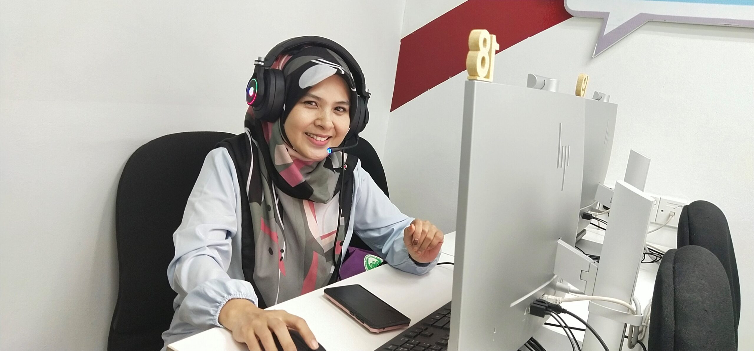 Beliau telah berjaya menjalankan pengajaran secara atas talian dengan menggunakan fasiliti di sini serta dibantu oleh petugas ketika menjalankan pengajaran atas talian tersebut.